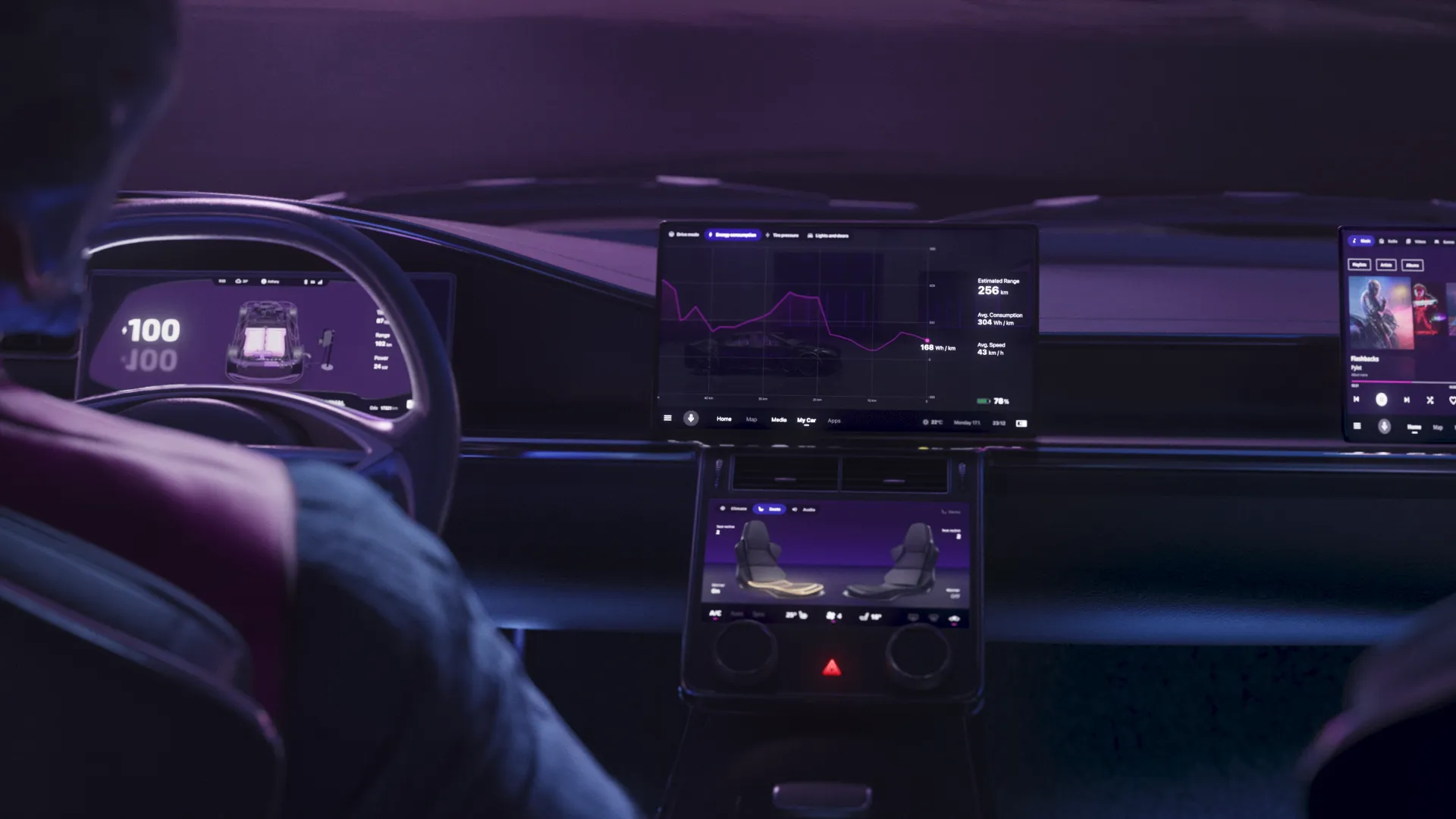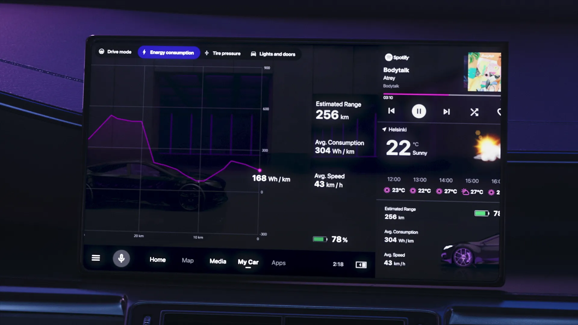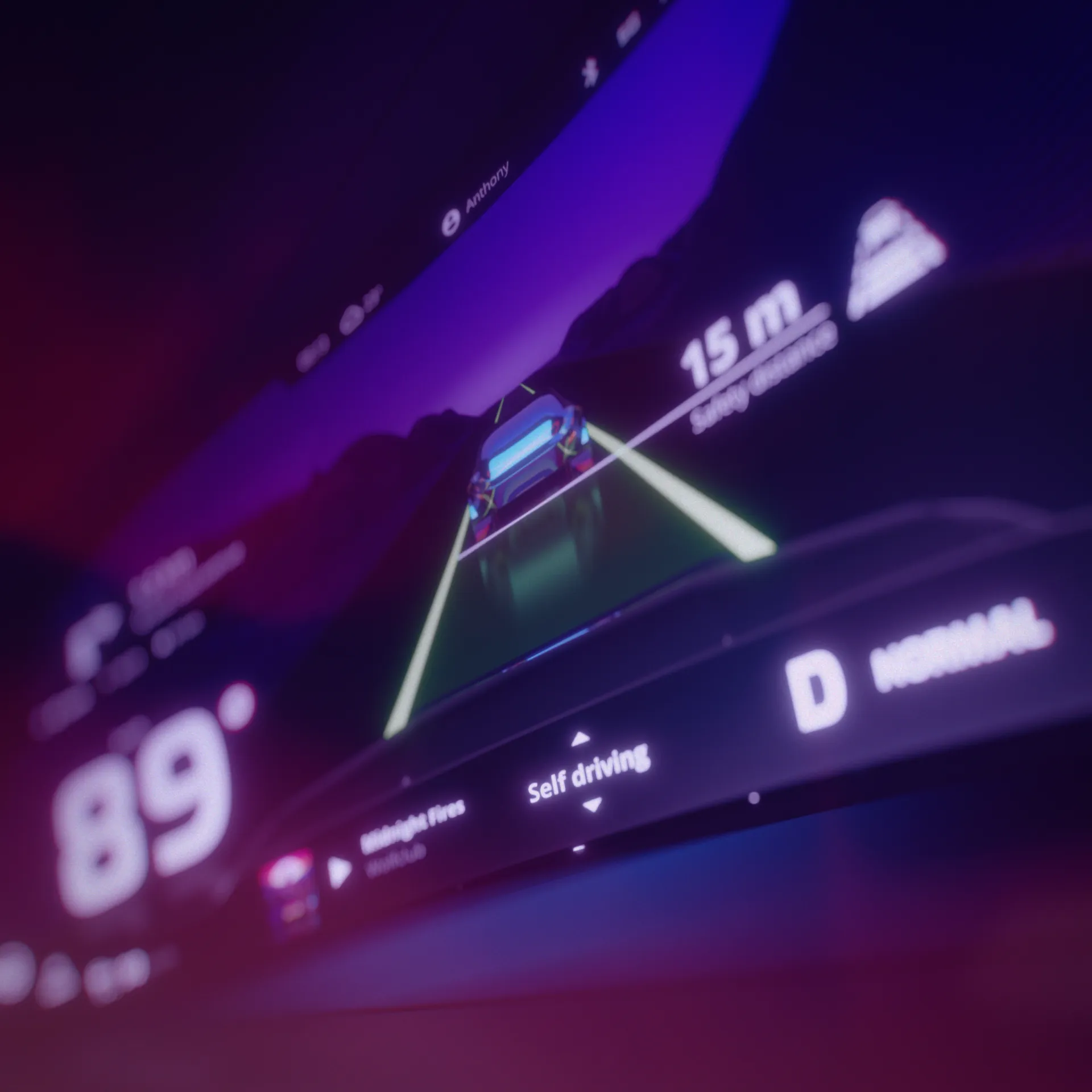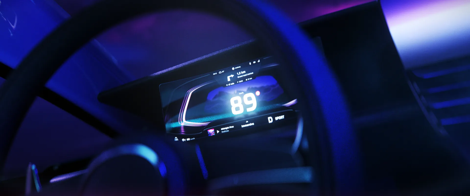 In the film, we follow an anonymous character travelling to a city with an autonomous electric car. Throughout the journey we can see how the car’s user interface displays important information related to different parts of the journey.