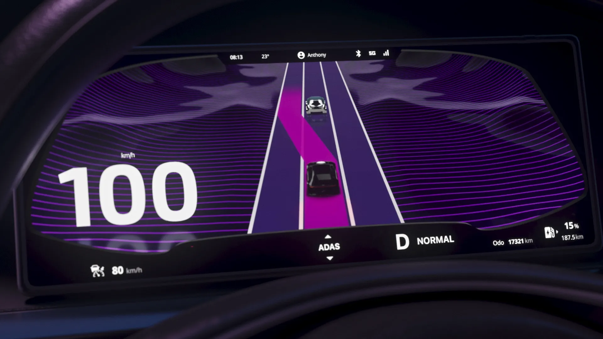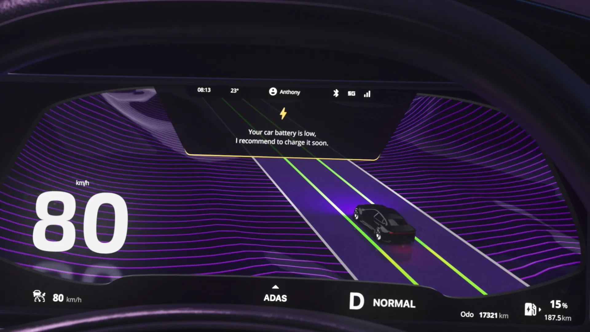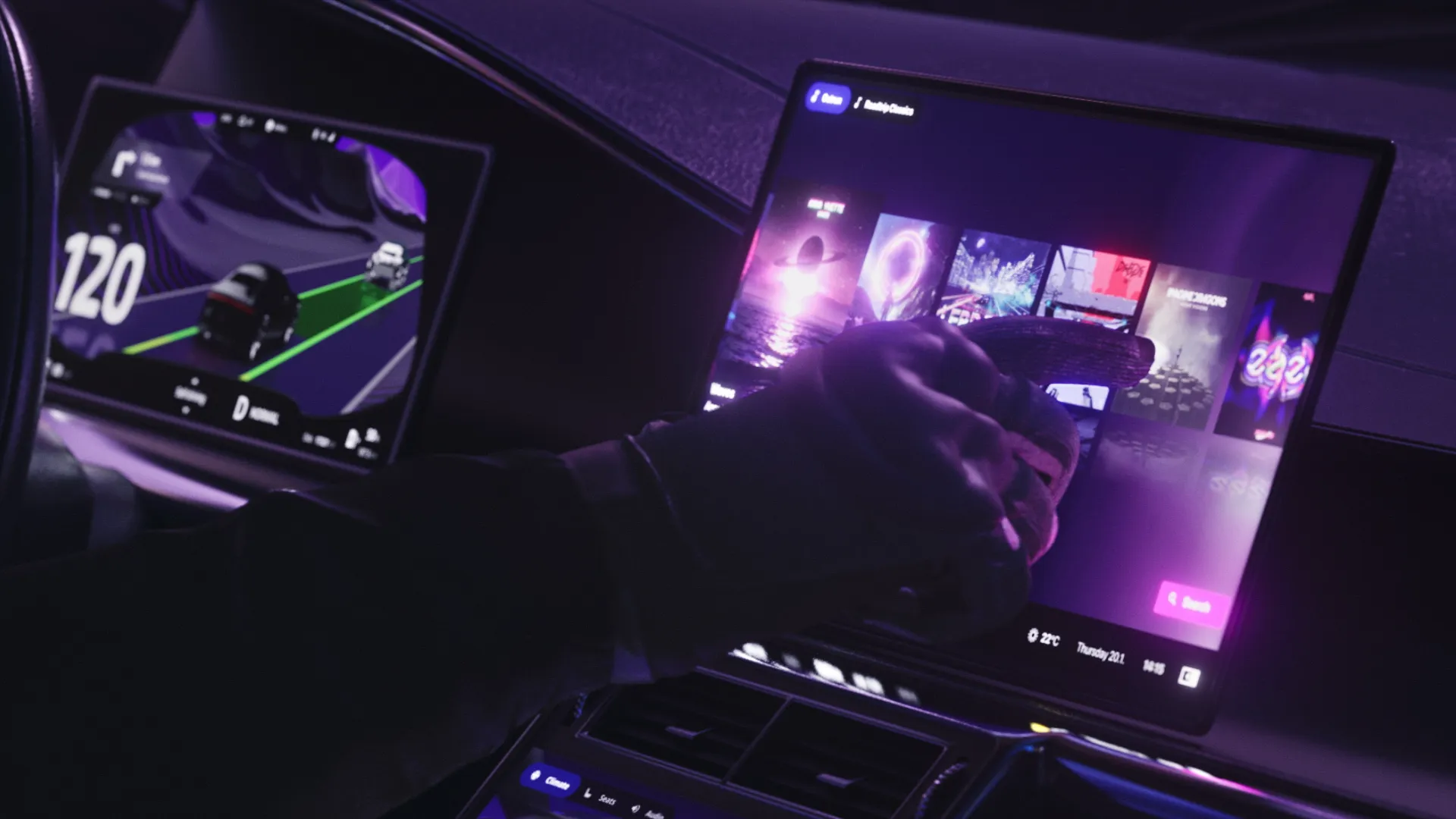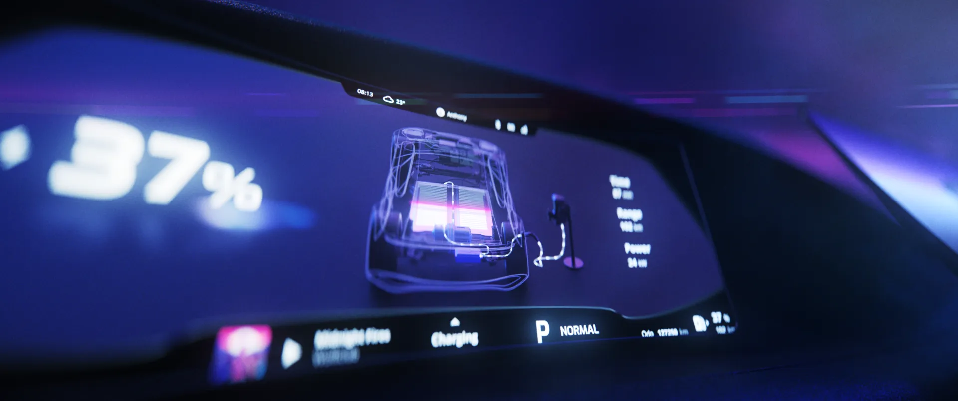 In the film, we follow an anonymous character travelling to a city with an autonomous electric car. Throughout the journey we can see how the car’s user interface displays important information related to different parts of the journey.