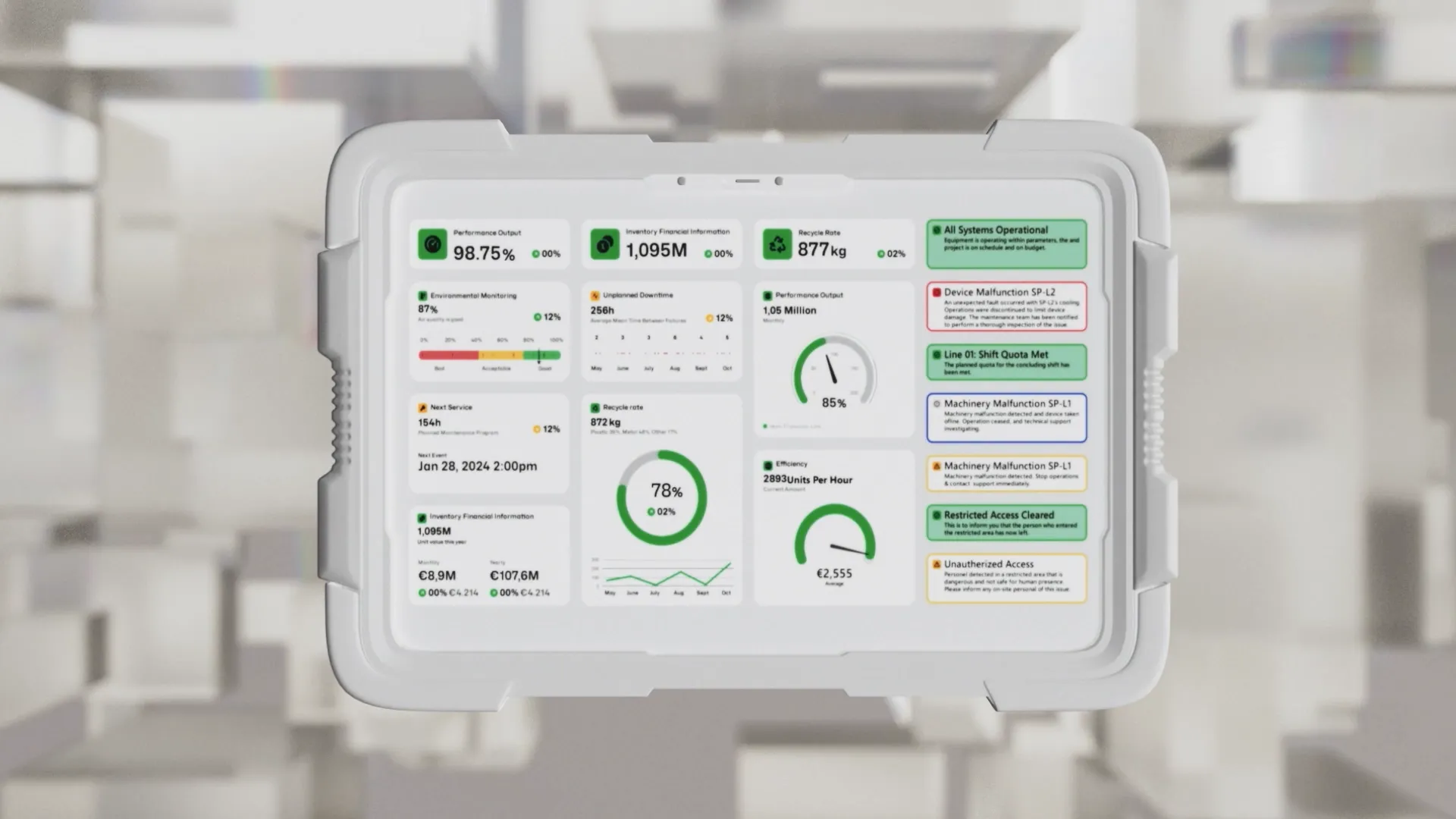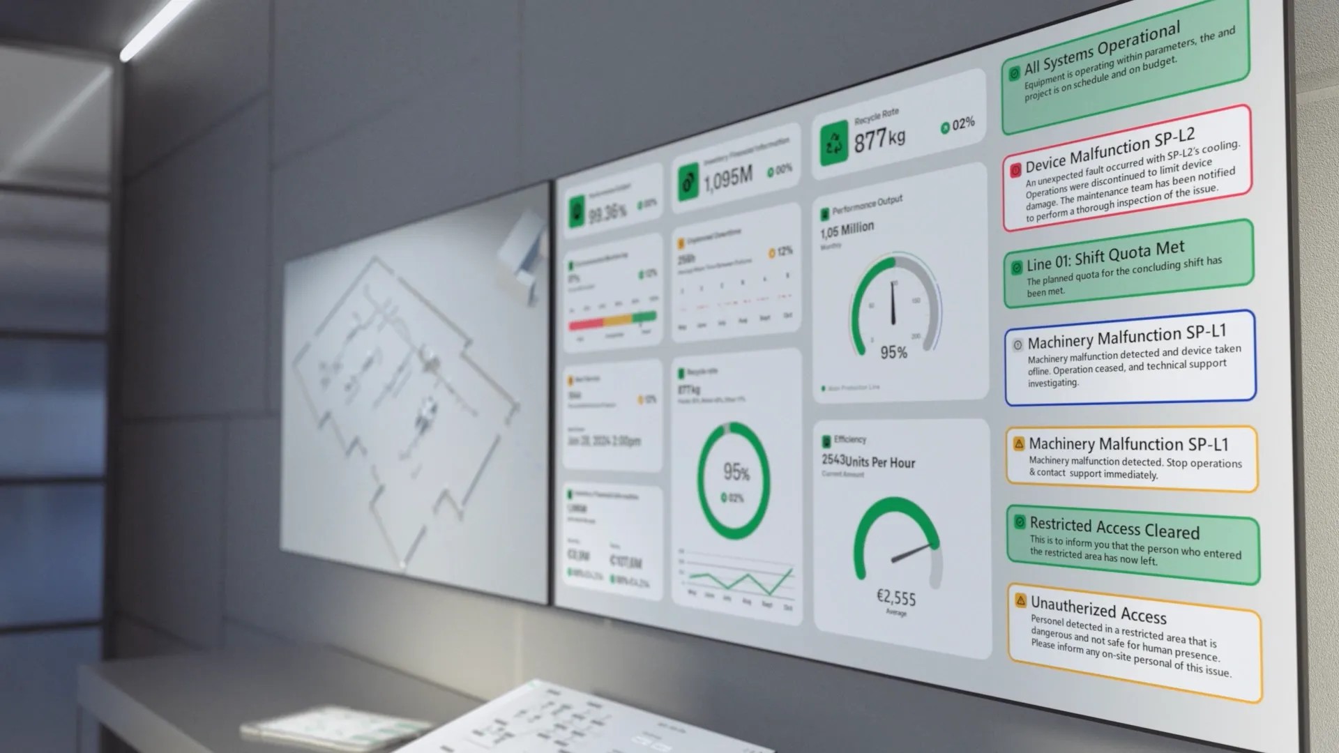 The animation was done using 3D graphics in order to create a visually pleasing and easy-to-read environment to showcase Qt’s solutions for Industrial Automation.
