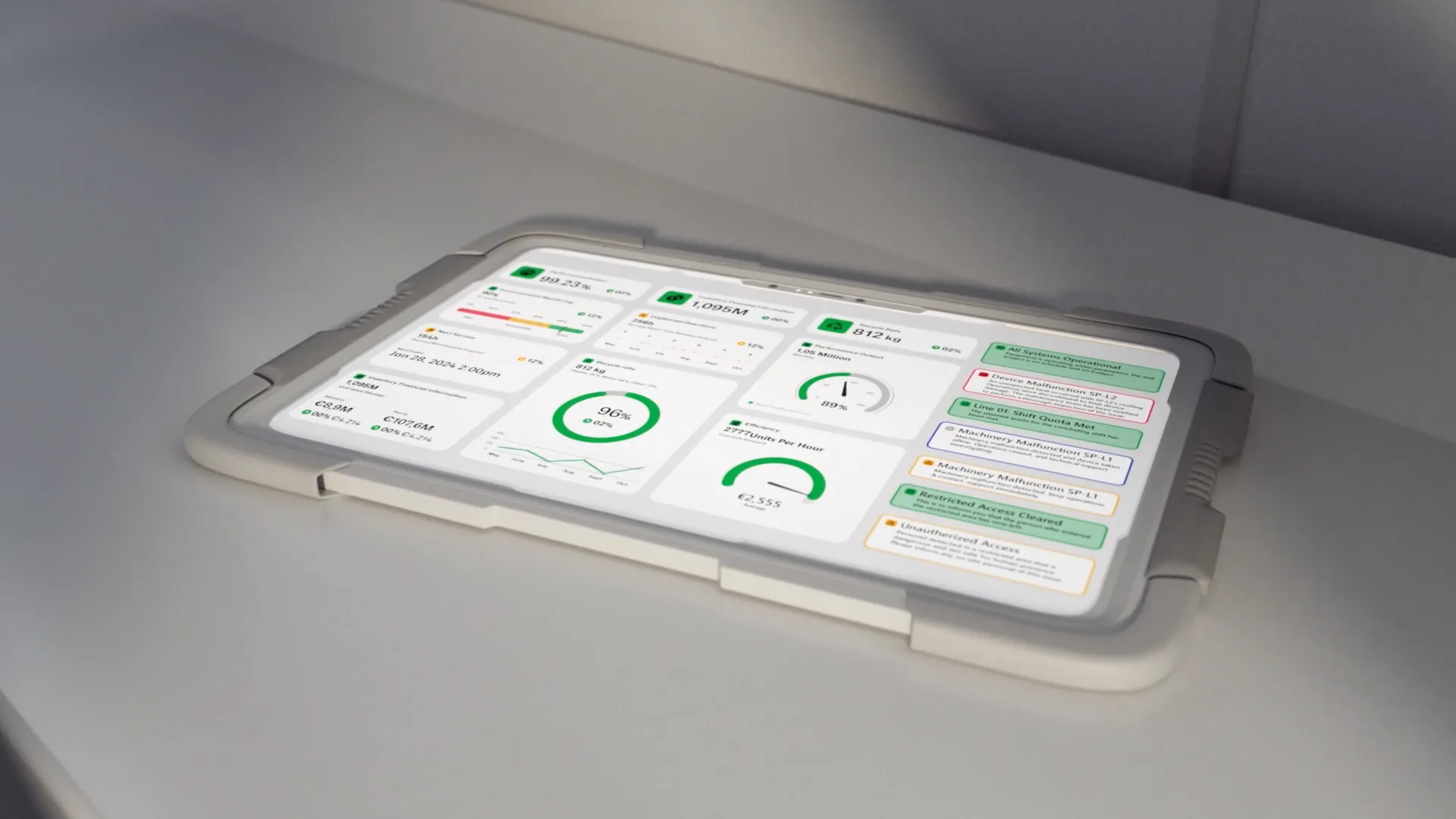 The user interfaces (UIs) are based on actual real UI graphics that end users can create using Qt’s Design Studio software. We were able to implement them seamlessly to the Qt Industrial Automation animation.