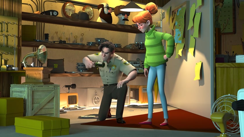 A screengrab image from the 3D character animation production we made for the game marketing animation project for Rovio Small Town Murders.